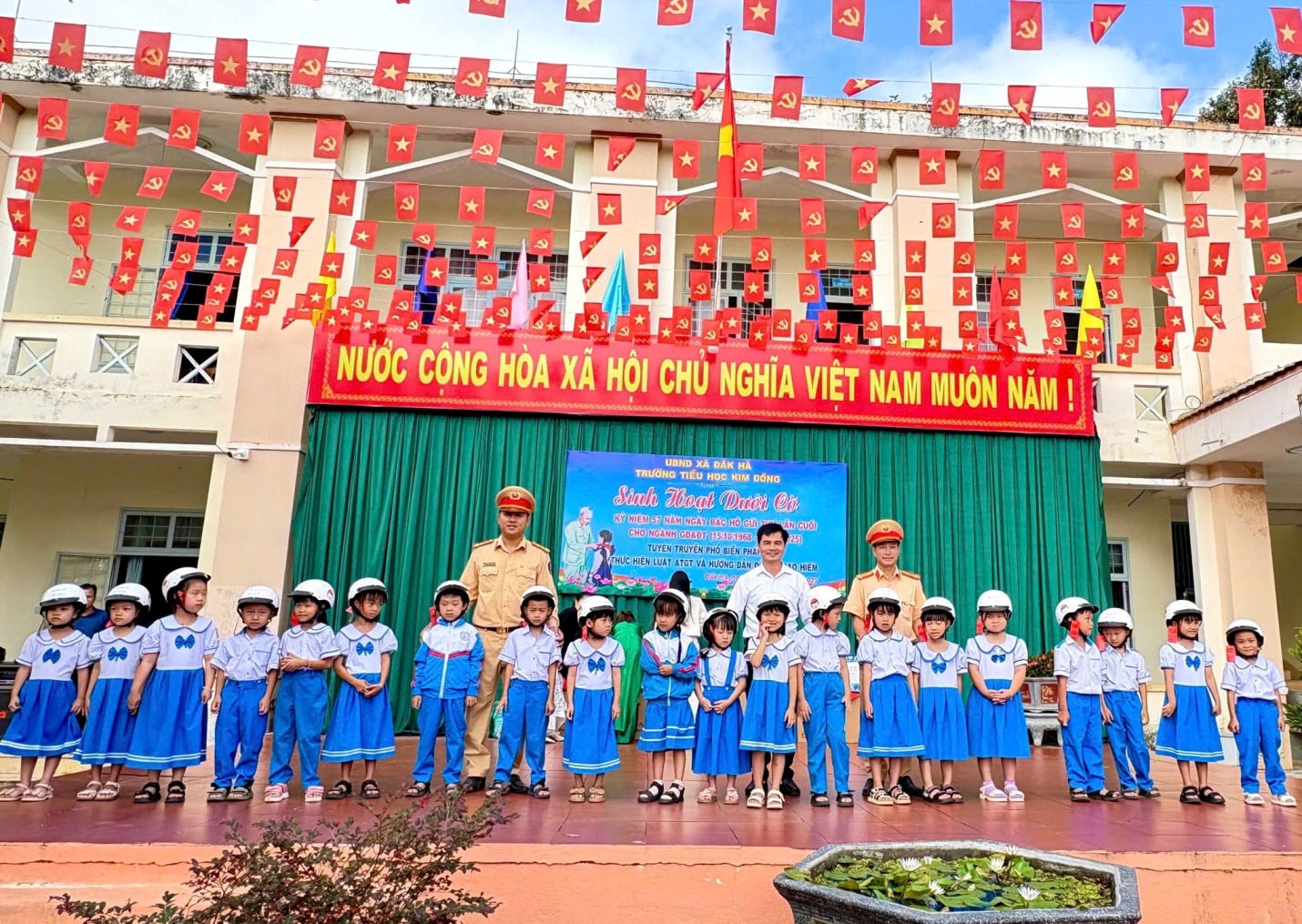 Sáng ngày 13/10/2025, tại Trường Tiểu học Kim Đồng, xã Đăk Hà, tỉnh Quảng Ngãi, Đội Cảnh sát giao thông đường bộ số 2 – Phòng Cảnh sát giao thông, Công an tỉnh Quảng Ngãi phối hợp với nhà trường và Công ty Honda Việt Nam tổ chức buổi tuyên truyền, phổ biến pháp luật về trật tự an toàn giao thông, lồng ghép trong chương trình sinh hoạt dưới cờ đầu tuần, hướng tới kỷ niệm 57 năm ngày Bác Hồ gửi thư lần cuối cho ngành Giáo dục và Đào tạo (15/10/1968 – 15/10/2025).