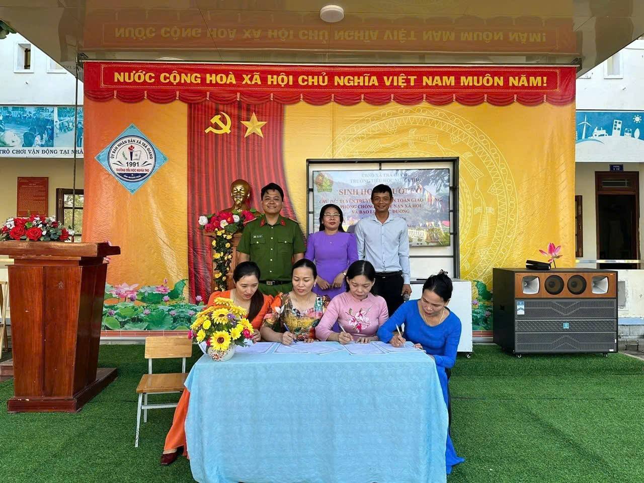 Song song với công tác tuyên truyền, Công an xã Trà Giang đã triển khai 30 lượt tuần tra, kiểm soát với 180 lượt cán bộ chiến sĩ và lực lượng bảo vệ ANTT cơ sở. Các lực lượng tham gia phân luồng giao thông trước cổng trường vào giờ cao điểm, hướng dẫn phụ huynh đưa đón học sinh đúng nơi quy định, nhắc nhở không dừng đỗ gây ùn tắc. Đồng thời, kiên quyết xử lý và ngăn chặn tình trạng lấn chiếm lòng, lề đường để kinh doanh, buôn bán trước cổng trường học.
