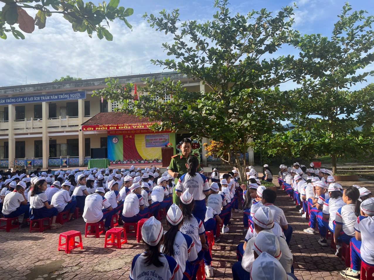 Ngay sau lễ ra quân, UBND xã đã phân công lực lượng tổ chức tuyên truyền, phổ biến kiến thức pháp luật về trật tự an toàn giao thông, phòng chống tệ nạn xã hội và bạo lực học đường tại 6 điểm trường với sự tham gia đông đủ của giáo viên, nhân viên và học sinh: