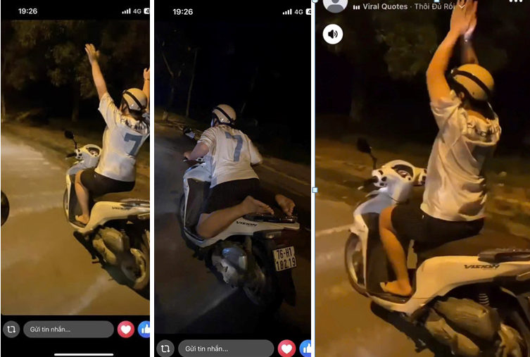 Qua làm việc, L.H.P thừa nhận vào khoảng 18 giờ 45 phút ngày 27 tháng 10 năm 2025, tại đường ĐH.45 thuộc tổ dân phố Châu Me, phường Sa Huynh, tỉnh Quảng Ngãi L.H.P điều khiển xe mô tô có dung tích xi lanh đến 125cm3 trong tư thế buông cả hai tay khi xe đang chạy. Hành vi nguy hiểm này được bạn đi cùng là N.T.M.H dùng điện thoại quay video, sau đó được N.T.M.H đăng tải lên các nền tảng mạng xã hội.