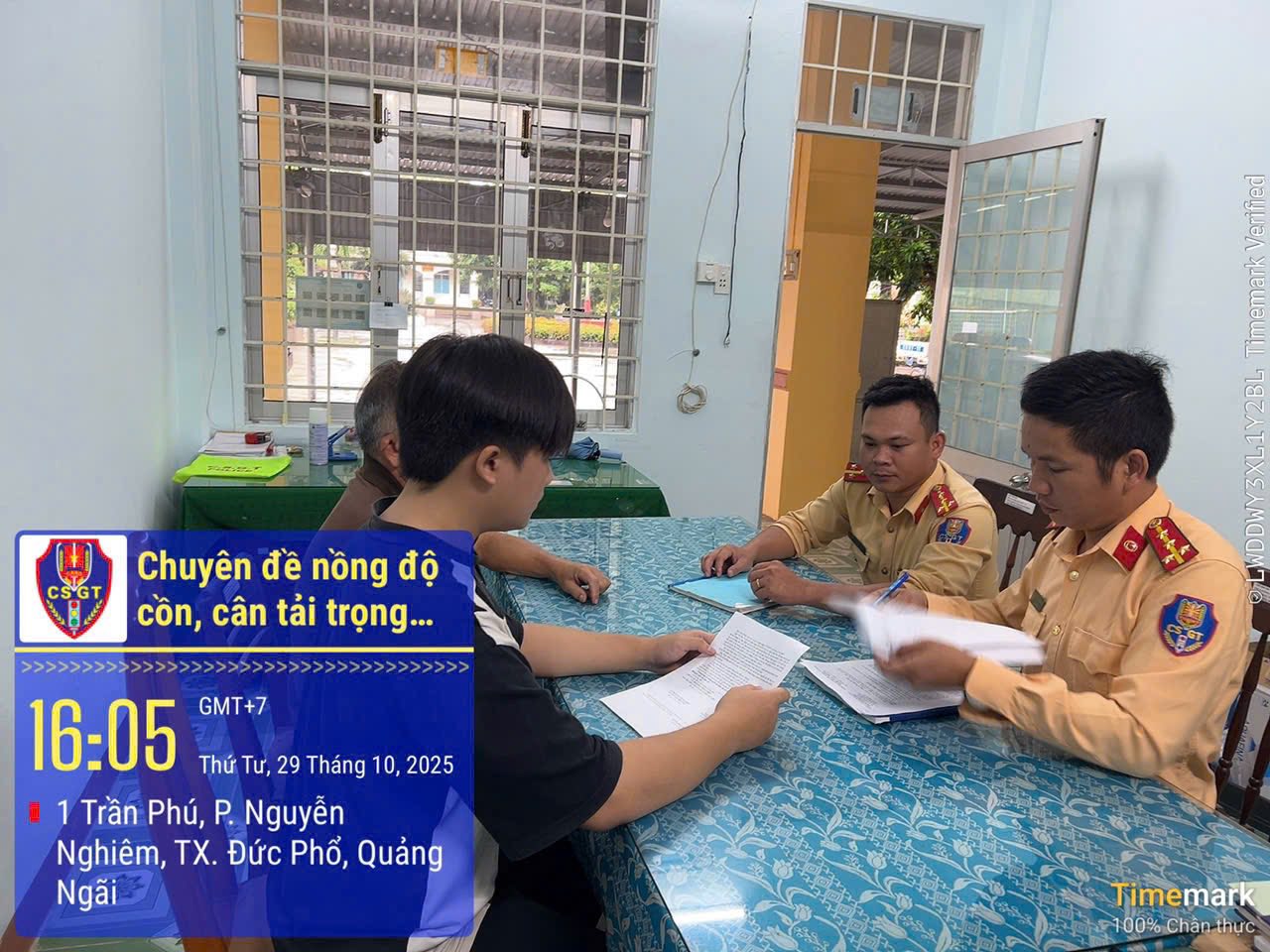 Trước đó, vào ngày 29/10/2025, Trạm Cảnh sát giao thông Đức Phổ (Khu vực 6 – Đức Phổ) đã phối hợp cùng Công an phường Sa Huỳnh, tỉnh Quảng Ngãi làm việc với em L.H.P (sinh năm 2008, thường trú tại tổ dân phố Thạch By 2, phường Sa Huỳnh, tỉnh Quảng Ngãi) liên quan đến đoạn video đăng tải trên mạng xã hội ghi lại cảnh em L.H.P buông cả hai tay khi đang điều khiển xe.