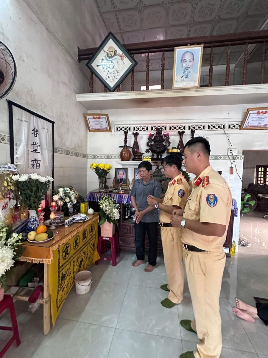 Chiều ngày 10/11/2025, Phòng Cảnh sát giao thông (KV2- Đội Cảnh sát giao thông đường bộ số 1) đến thăm hỏi, động viên và chia buồn đến gia đình em L.B.H (SN: 2000; trú tại thôn Phước Lộc Tây, xã Sơn Tịnh, tỉnh Quảng Ngãi) là nạn nhân không may bị đuối nước do mưa lũ khi điều khiển phương tiện mô tô đi làm về trên tuyến Quốc lộ 24B.