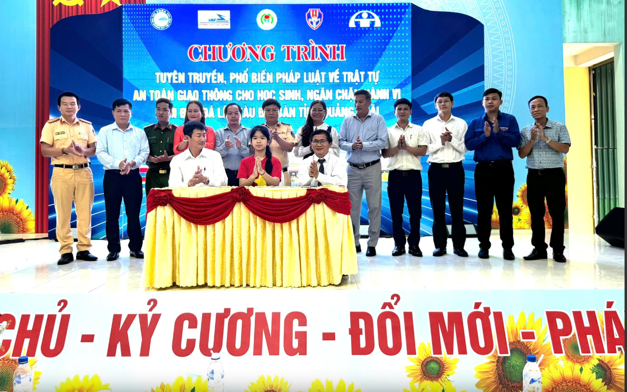 Chi nhánh khai thác đường sắt Nghĩa Bình phối hợp với Cục CSGT và Ban ATGT tỉnh Quảng Ngãi tổ chức tuyên truyền đến hàng trăm học sinh tại Quảng Ngãi về trật tự ATGT đường sắt.